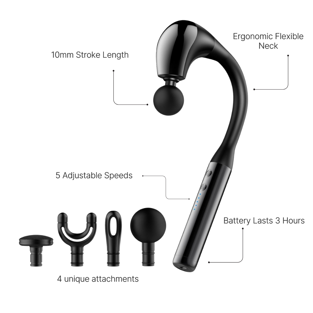 Percussive therapy increases blood flow and decreases tension deep within the muscle, using a scientifically-calibrated combination of speed and depth to treat your muscles comfortably by overriding the pain signals sent to the brain.